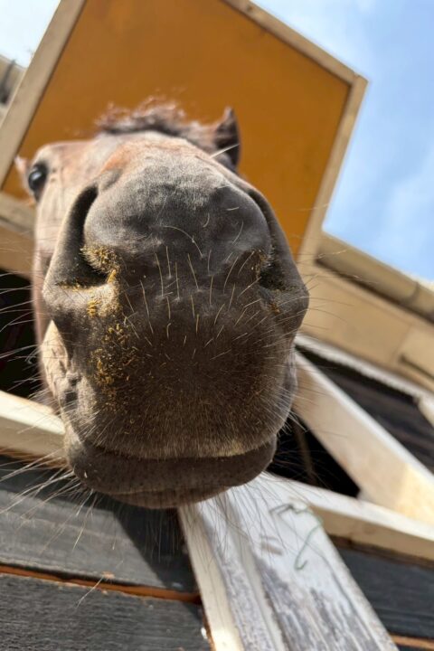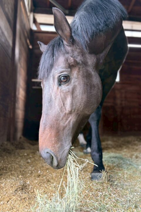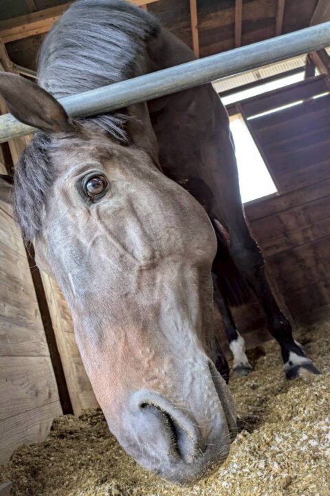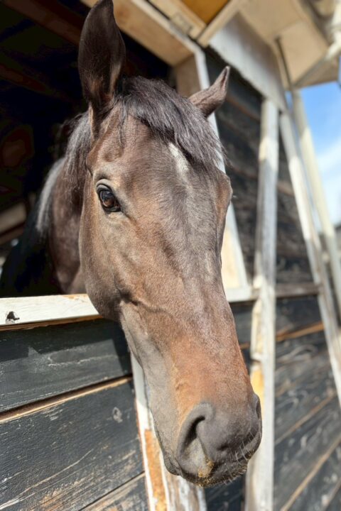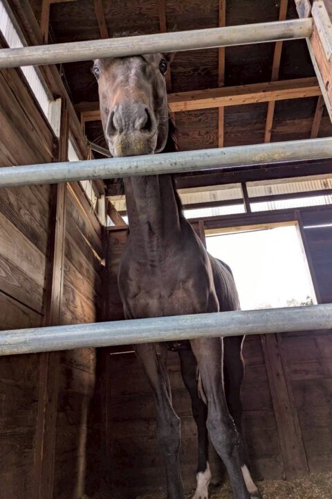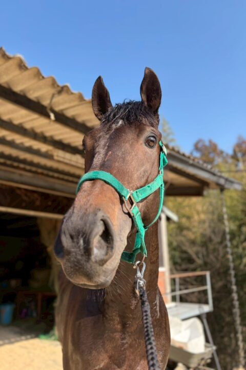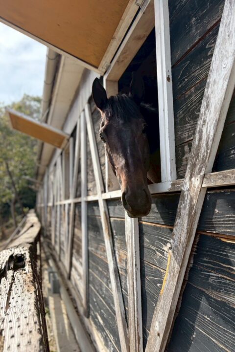 牡馬らしくよく外を見たり、他の馬の嘶きに反応して自分も嘶くと元気です。