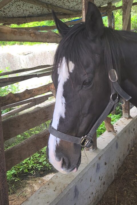 令和7年の6月、肥育場には沢山の馬たちが収容されており、そしてこのアンジュ号には、お腹に子供が出来た?(妊娠?)という情報があり一旦、引き取りを中断させて頂きました。
