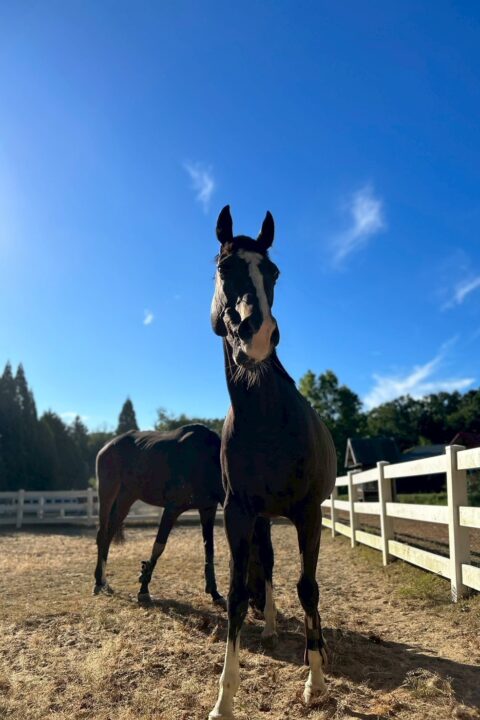 マイペースながらも社交的で、隣の放牧地に初めての馬が来た際には自分から積極的にコミュニケーションを取ろうとする好奇心も。