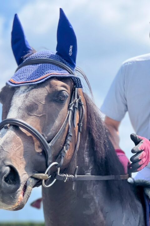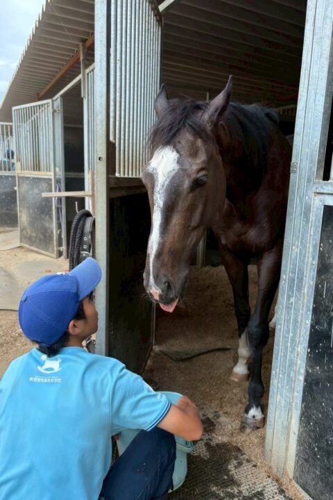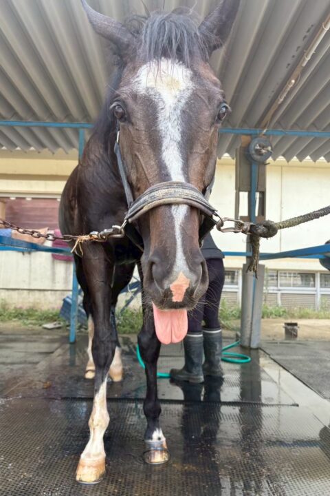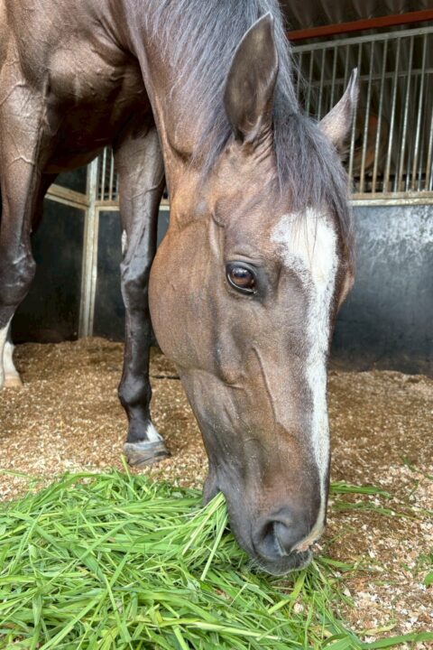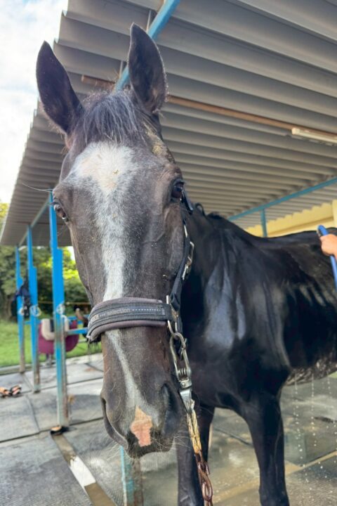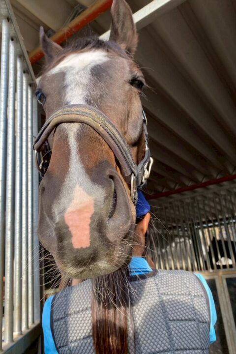 - 厩舎や洗い場等では、必要以上に"人に甘える""馬が好き"という素振りはあまり見せず、淡々と自分の役割をしっかりとこなしてくれる子です。馬にも人にもしっかりと一線を引いて接してくれる"パヴォーネらしい性格"をしています。また、運動面においてもとても勇気があり、非常に物覚えがよく障害もしっかりと飛越します。