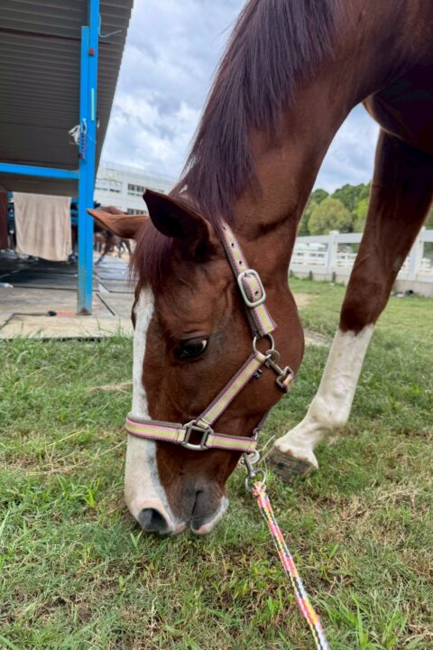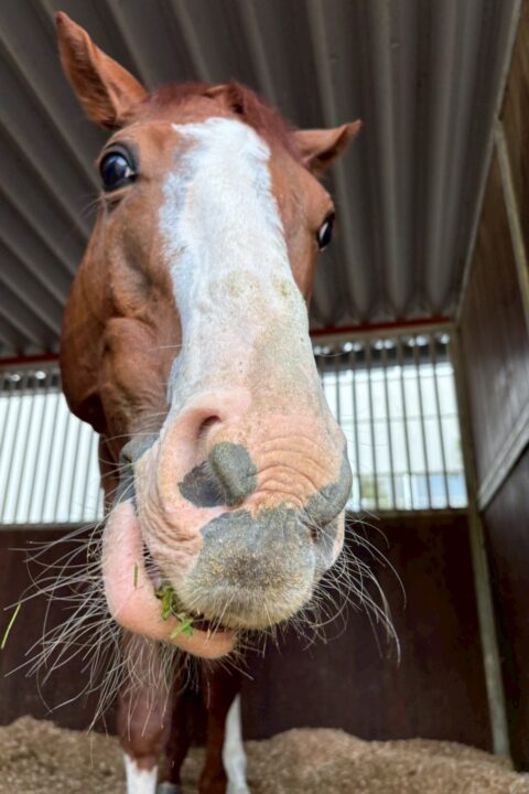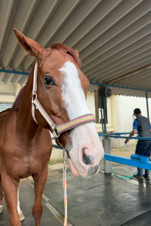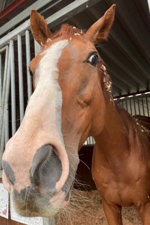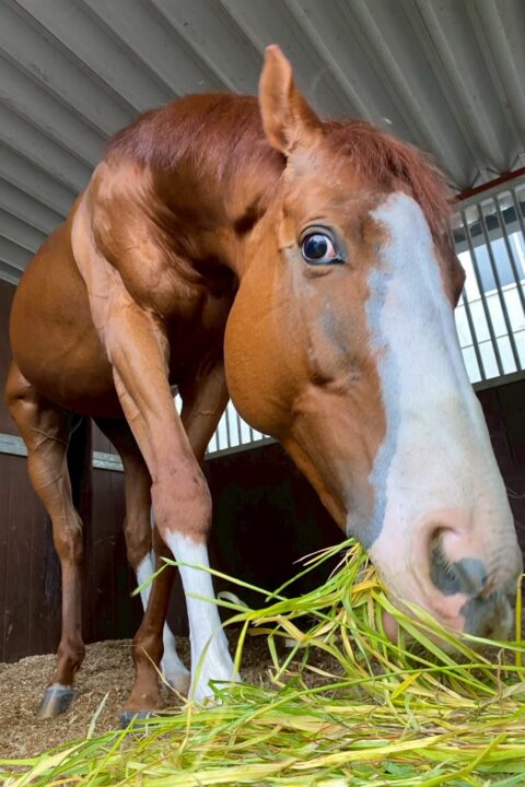 令和5年の11月、肥育場には8頭ほどの馬がいました。"ハルくん"は、そもそも馬の蹄の裏側に履いているはずの蹄鉄の装着がなく、「もしかしたら競走馬として出走していない1歳馬?」という可能性も考えられ、顔も非常に幼さが残る馬でした。