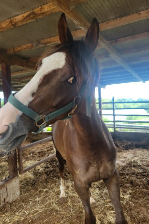 令和6年7月、肥育場の厩舎で馬を眺めていたら"馬房の奥から耳を伏せて襲ってくる姿"のノアとご対面。そんなノアとずっと接していたら、ノアの表情がだんだん柔らくなってきました。
