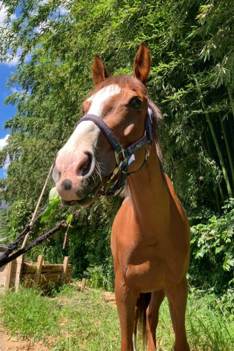 現在は千葉県山武市にある馬の学校 東関東馬事高等学院に在厩しています。