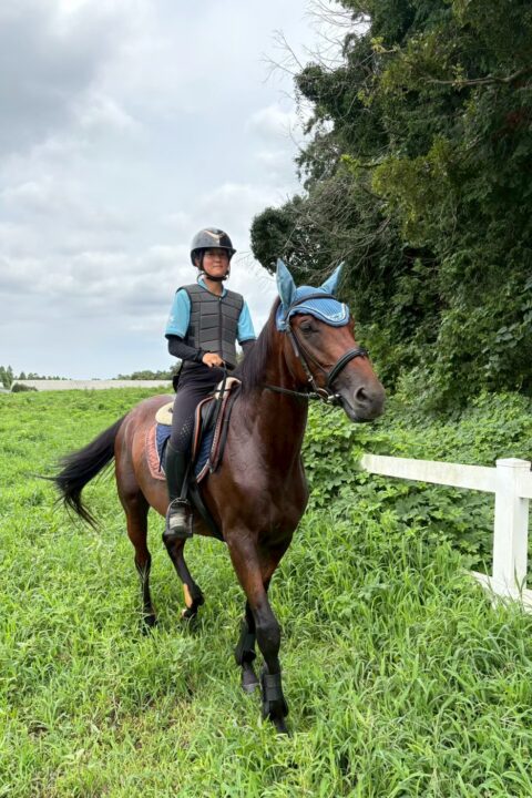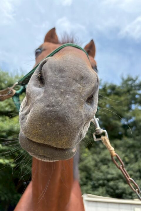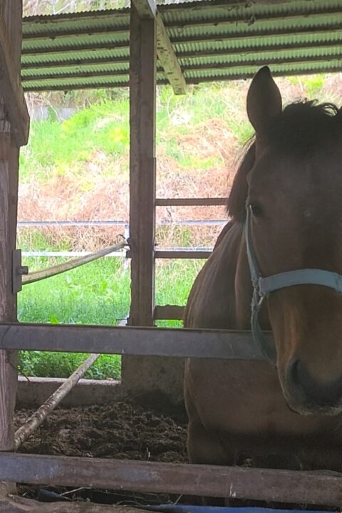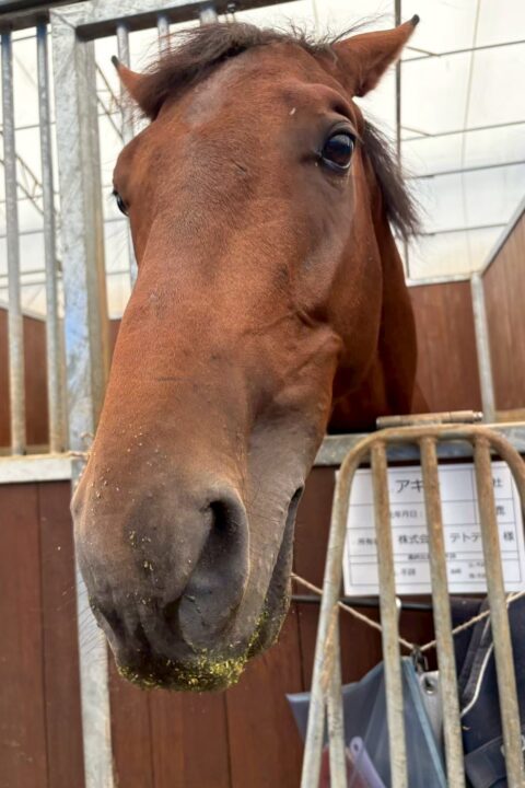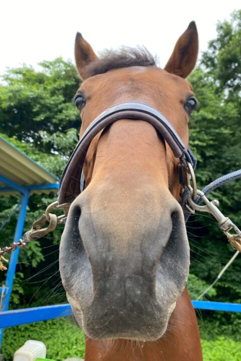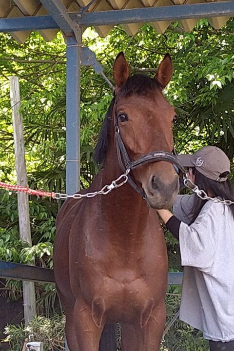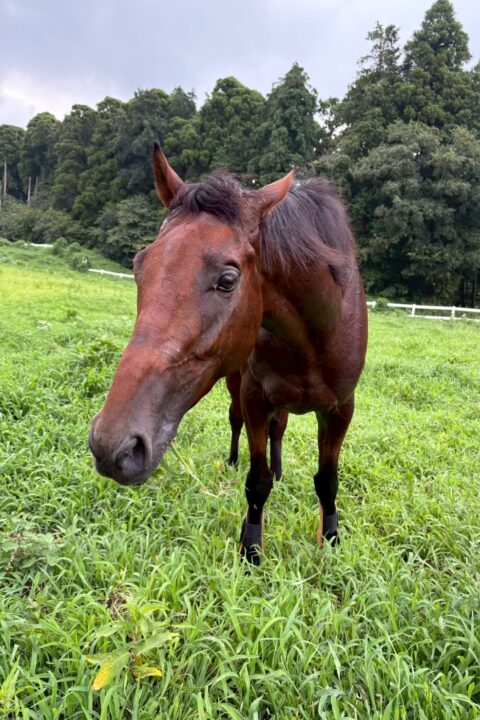 YouTubeでも配信させて頂いている通りの子(優しくて・人懐っこい)まだ、若そうで、反面慣れてくると少しヤンチャなところも可愛いです。現在は、まだ放牧・休養期間中でもあり、騎乗訓練には至っておりませんが、これからの運動が非常に楽しみな子でもあります。きっと、元気いっぱいな感じがします~。(笑)今は、だいぶ緊張感もほぐれてのんびり過ごしてくれています。これからのこの子に期待です。