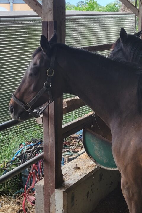 令和7年の6月、相変わらず肥育場には次々と引退馬たちが運ばれて来ています。アンジュとヒナタは、妊娠している可能性がある状況でした。(現在は、治療完了しています)それらの状況を確認しながらの輸送だったため、輸送がずれ込んでしまい皆様にご心配をかけてしまいましたが無事にホースレストに到着しました。
