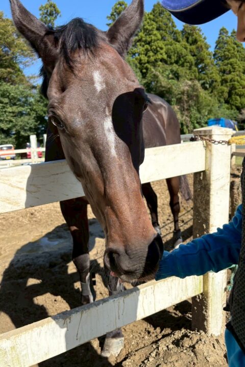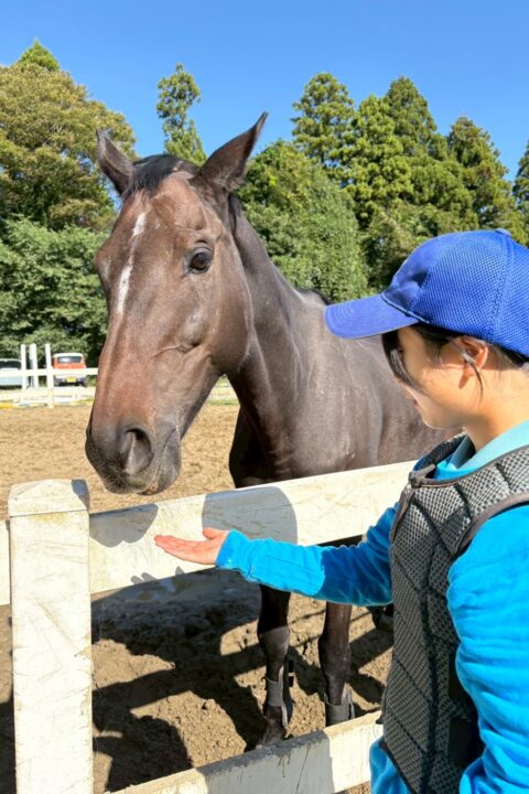 肥育場での生活を経て、馬や人との関わりにも前向きな姿勢が見られるようになりました。